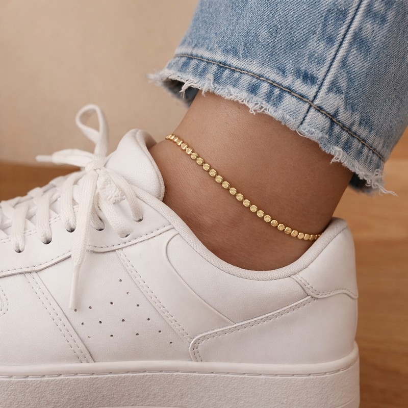 Ankelkæden sidder let om anklen og er perfekt til sommerens kjoler, sandaler og bare fødder, men fungerer også som en enkel detalje til hverdagsbrug. Den varme forgyldning giver et klassisk udtryk og gør smykket nemt at kombinere med andre guldfarvede smykker.