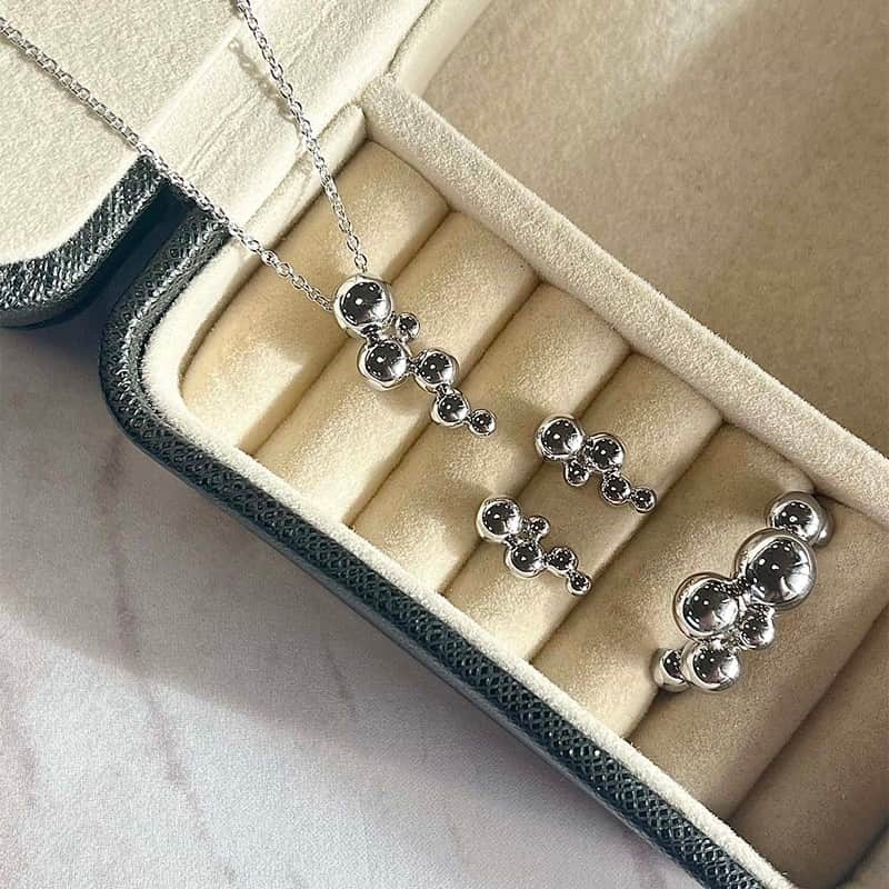 Vedhænget kommer med en sølvkæde, så du kan tage smykket i brug med det samme. Kæden understreger vedhængets elegante udtryk og giver en flot helhed, uanset om det bæres alene eller sammen med andre sølvkæder i et lag-på-lag look. Den enkle konstruktion og de bløde kugleformer gør det til et smykke, der hurtigt bliver et favoritvalg i smykkeskrinet.