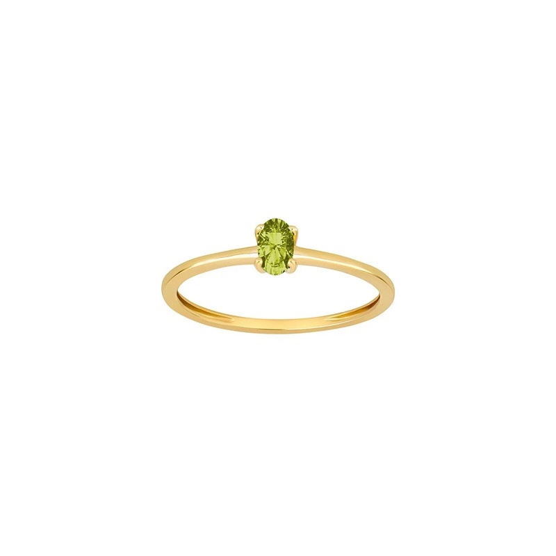 Den ovale peridot giver ringen et eksklusivt og feminint præg, som gør den velegnet til både hverdag og festlige anledninger. Bær den alene som et smukt statement eller kombiner den med andre guldringe for et mere personligt udtryk.