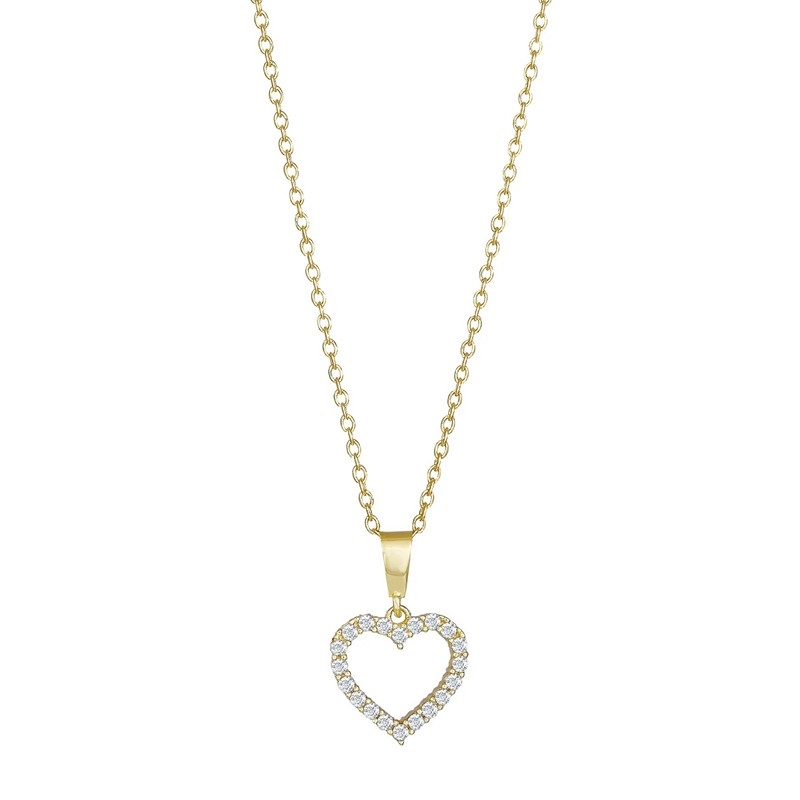Siersbøl - 8kt. guld hjertevedhæng med zirkonia inkl. forg. kæde