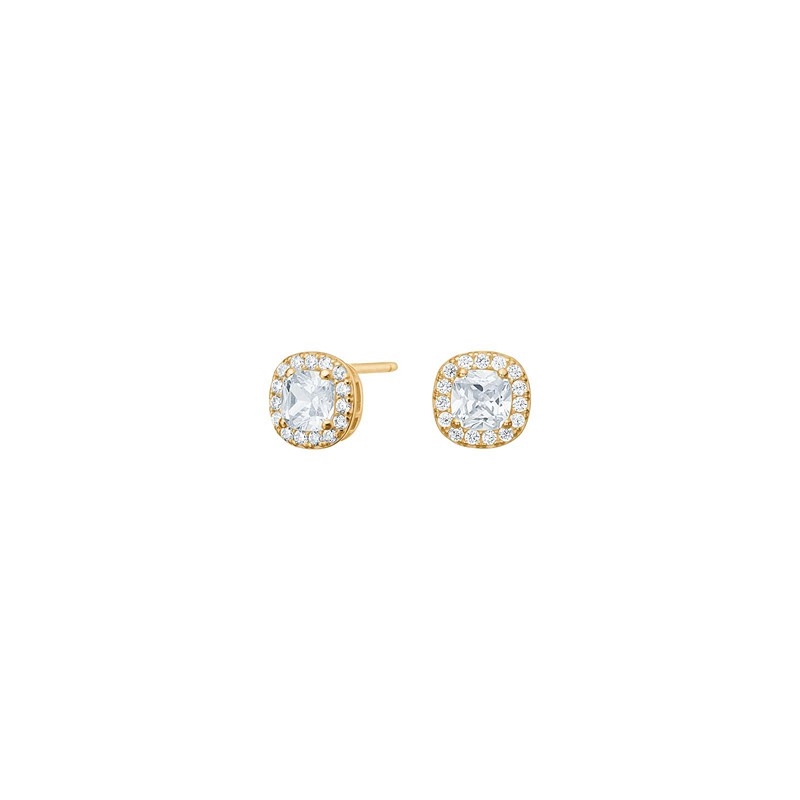 Rosetdesignet giver ørestikkerne et tidløst og harmonisk look, hvor stenene fanger lyset fra alle vinkler. Den firkantede form med bløde hjørner tilfører smykket et moderne præg, samtidig med at det bevarer et klassisk udtryk, der aldrig går af mode.