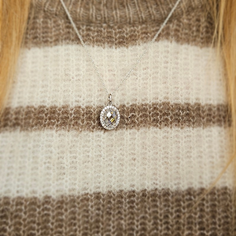 Sølv vedhæng med zirkonia i roset og sølv kæde