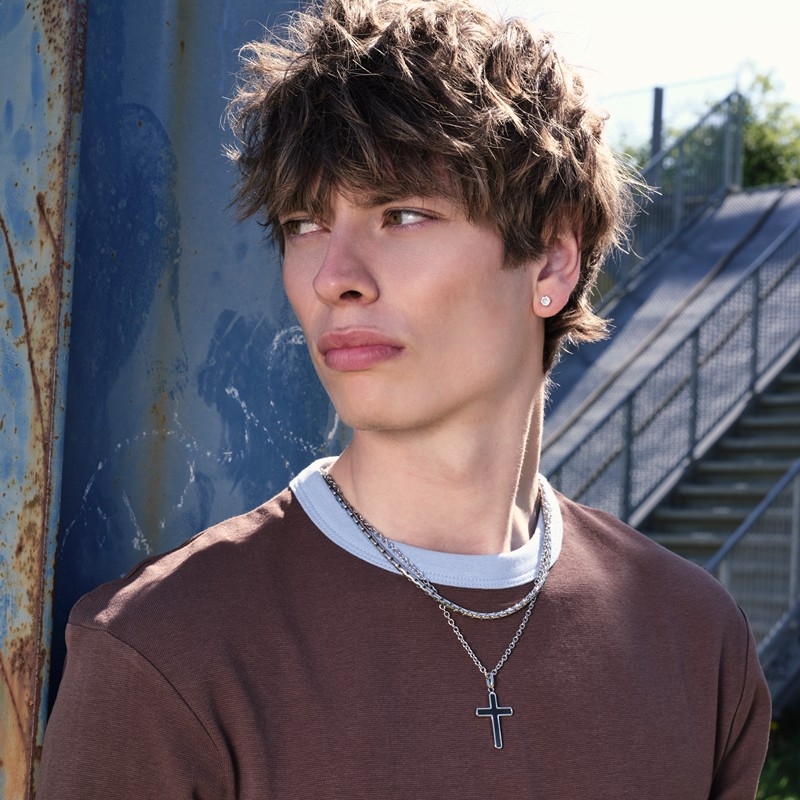 Halskæde i rustfrit stål, et enkelt og maskulint smykke, der kan bruges til enhver anledning. Kæden har en rå sammensætning af led, som giver den et markant udtryk og gør den anderledes end de klassiske modeller. Rustfrit stål er kendt for sin styrke og holdbarhed, så du får en kæde, der uden problemer kan bruges hver dag uden at miste sit look.