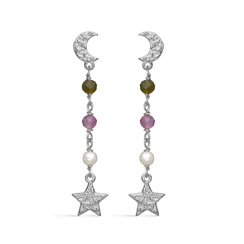 Studio Z - Måne/stjerne øreringe i sølv med rosa og grønne sten**