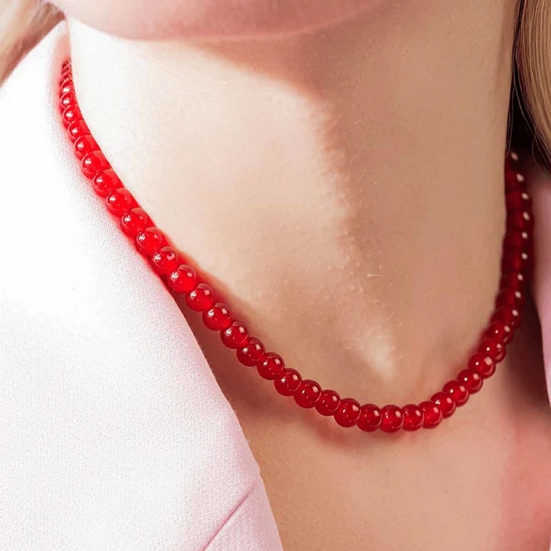 Den lille fine Berry halskæde fra House of Vincent er en elegant og farverig nyfortolkning af den klassiske perlekæde. Halskæden er sat med små runde krystalperler i en intens bær-rød farve, som hver måler ca. 5 mm i diameter. Den dybe farve Berry har et varmt og levende skær, der tilfører smykket et feminint og iøjnefaldende udtryk. Perfekt til at pifte hverdagsstilen op eller tilføje et strejf af elegance til aftenens outfit.