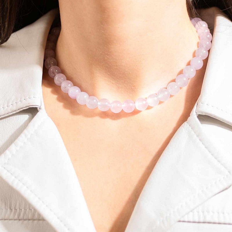 Lavendel er en farve, der ofte forbindes med ro, balance og en form for stille luksus. Den har et blødt og drømmende udtryk, som fremstår både eksklusivt og afslappet på samme tid. Farven er nem at style og passer smukt til både lyse og mørke nuancer, hvilket gør halskæden anvendelig i mange forskellige sammenhænge – fra hverdagsbrug til mere festlige anledninger.